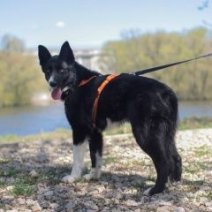 Убежала 29. 09 в 14:00 черная дворняжка с белыми лапами, похожа на небольшую лайку, оранжевые глаза. Оранжевая шлейка. Пугливая, если увидите, сразу звоните