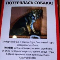 Сегодня в 09:35  4566  54 Пропала собака Москва