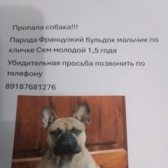 Сегодня в районе Рождественка убежала собака по кличке Сем(француский бульдог) 1. 5 года. Всем кто видел просьба сообщить по телефону..