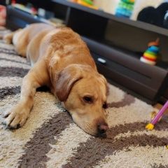Лабрадор находится на передержке, оставить не могу у себя Есть информация о нем: 7 лет, зовут Майло. С другими животными дома не уживается (со слов волонтеров). Хозяевам стал не нужен и выкинули его. Хороший и дружелюбный, с детьми ладит хорошо. Очень послушный и знает команды..
