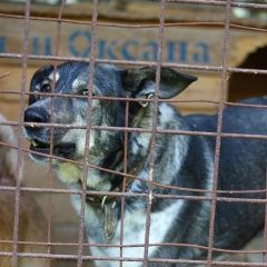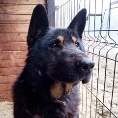 нашли в Кабаново, в подъезде. Жильцы не смогли войти и вызвали МЧС. Первую неделю существования в приюте он лежал в будке в вольере. Ни на что не реагировал. Только глаза жили. Не ел, не выходил. Сейчас он выходит из..