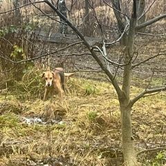 Бегает собака, похожа на Русскую легавую. Если появится хозяин попробуем придержать.