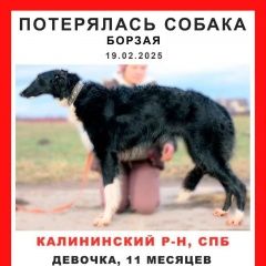 Потерялась русская борзая, окрас черный с белым Если Вы ее увидели, просьба НЕ ЛОВИТЬ НЕ ПРЕСЛЕДОВАТЬ только ПОЗВОНИТЬ хозяйке Желательно сфотографировать Потерялась 19. 02 в Калининском р-не СПб Может быть в любом..