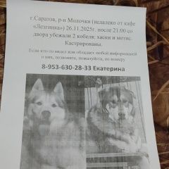Пропали две собаки, породы хаски и метис (похож на кавказца)