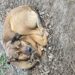 Увидели собачку. Или потерялась или выставили. Явно домашняя, чистая. На ошейнике болтается карабин, может сорвалась. Находится возле магазина Вега.