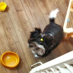 Потерялся йорк в шоколадно-белом окрасе.
